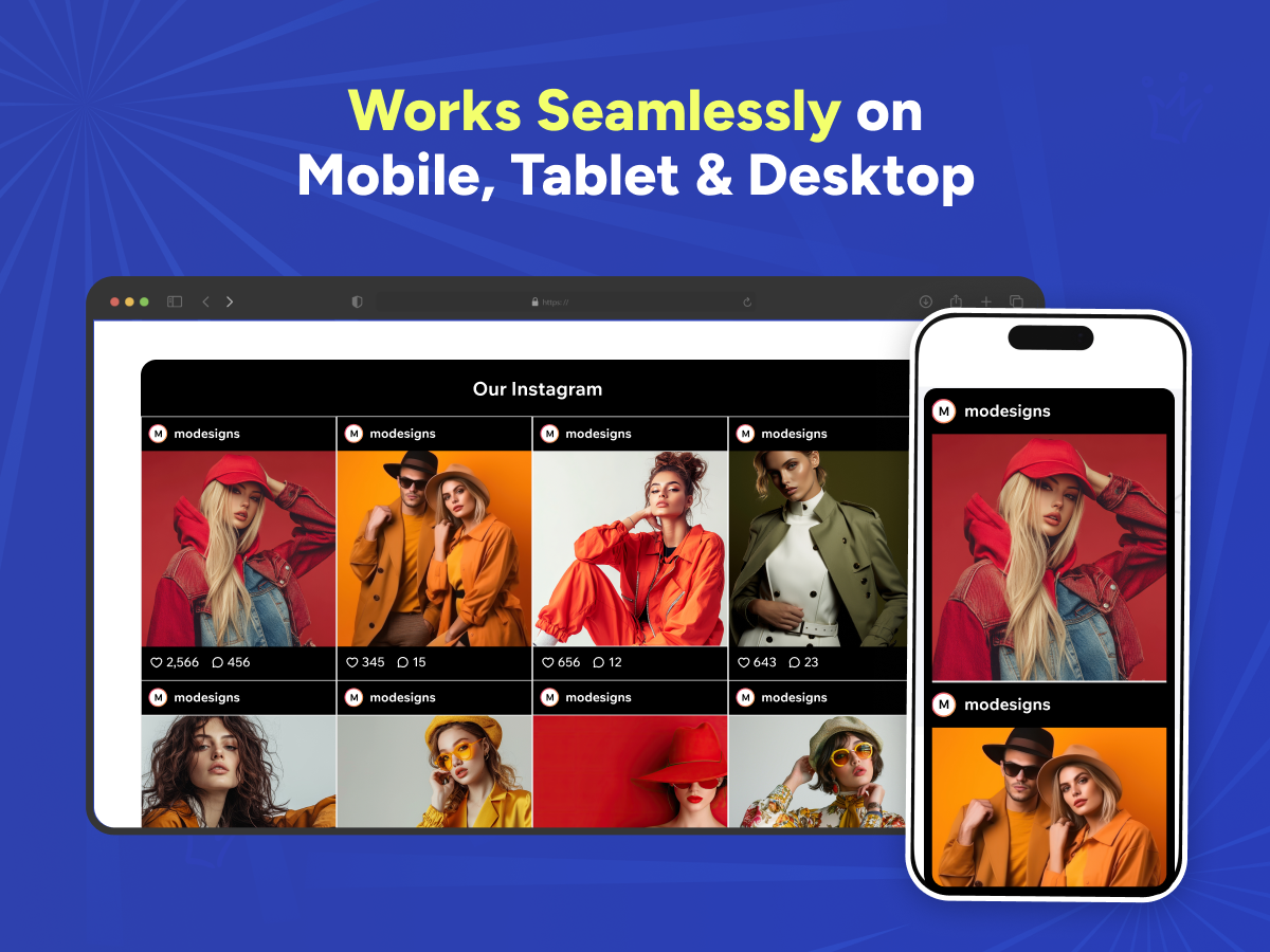 - Exiba um feed autêntico do Instagram no seu site
