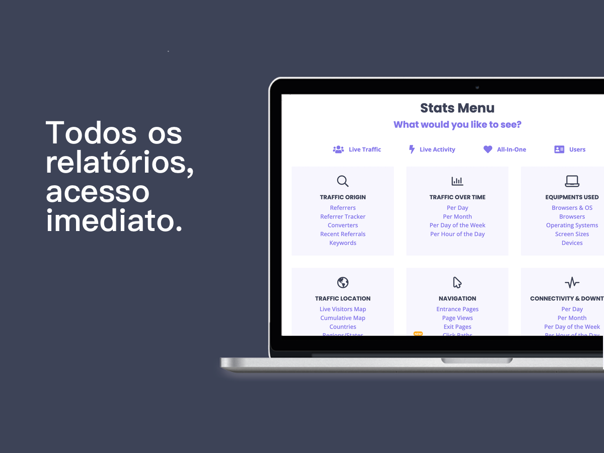 O Web-Stat é uma aplicação de análise de websites em tempo real que o ajuda a compreender como os visitantes interagem realmente com o seu site. Oferece a mesma profundidade de dados das ferramentas avançadas de analytics, mas apresenta-os de forma clara, direta e fácil de utilizar.